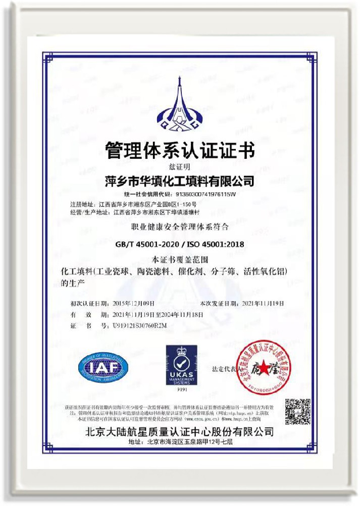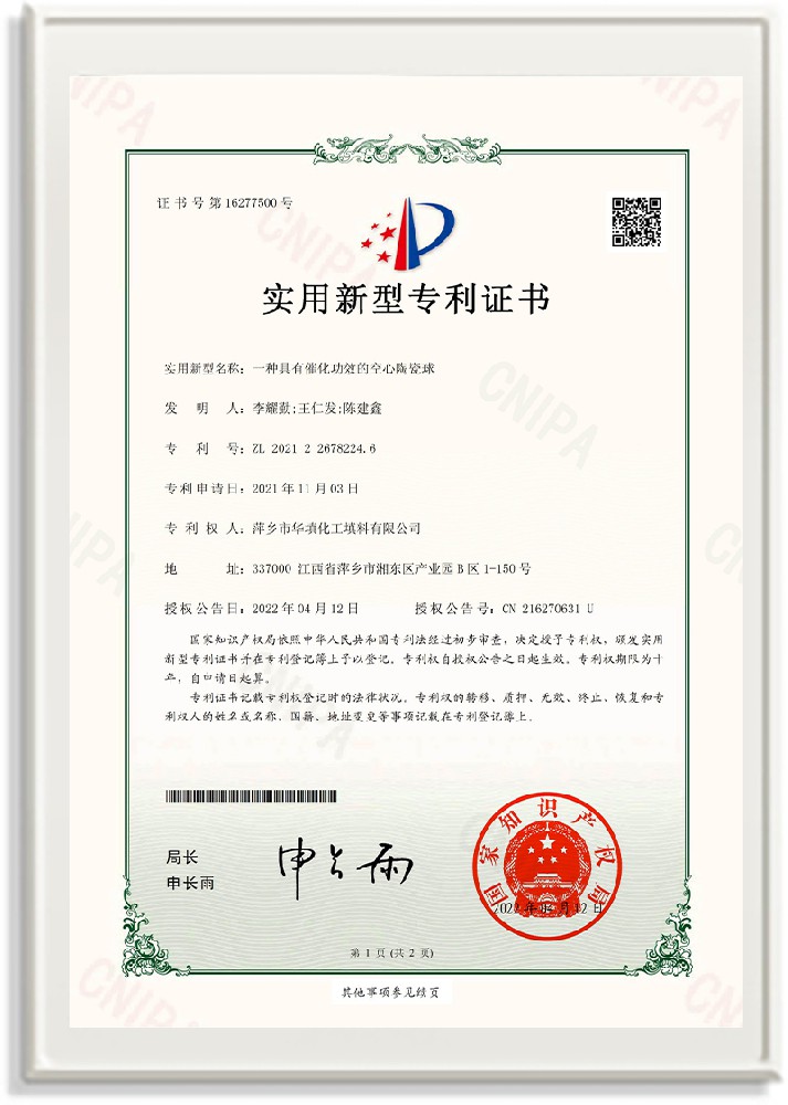 萍鄉(xiāng)市華填化工填料有限公司,位于320國道、109國道、浙贛鐵路、昌金高速公路貫穿其中,交通便利,是江西西部一顆燦爛明珠,創(chuàng)建于20世紀(jì)70年代初期,是中國石油天然氣股份有限公司“能源一號網(wǎng)”會員企業(yè)、中國石化物資采購電子商務(wù)網(wǎng)絡(luò)和中國海洋石油總公司采辦業(yè)務(wù)系統(tǒng)成員單位,是上海大學(xué)江西材料基因組工程產(chǎn)業(yè)研究院工業(yè)陶瓷產(chǎn)業(yè)創(chuàng)新聯(lián)盟基地,且通過ISO9001:2015質(zhì)量管理體系、ISO14001:2015環(huán)境管理體系、ISO45001:2018職業(yè)健康安全管理體系認(rèn)證的化工填料生產(chǎn)企業(yè)。公司擁有陶瓷、塑料、金屬填料、催化劑、活性氧化鋁、分子篩等產(chǎn)品生產(chǎn)線,現(xiàn)有固定資產(chǎn)3616萬元,占地面積3.8萬平方米。公司具有悠久的生產(chǎn)歷史、雄厚的技術(shù)力量和先進(jìn)的生產(chǎn)工藝設(shè)備,可生產(chǎn)工業(yè)瓷球(支撐劑)、陶瓷、金屬、塑料質(zhì)的規(guī)整、散堆化工填料及分子篩、催化劑、生化濾料、活性氧化鋁、石化助劑、活性炭、環(huán)保材料、耐火材料等系列的200多種規(guī)格型號產(chǎn)品。